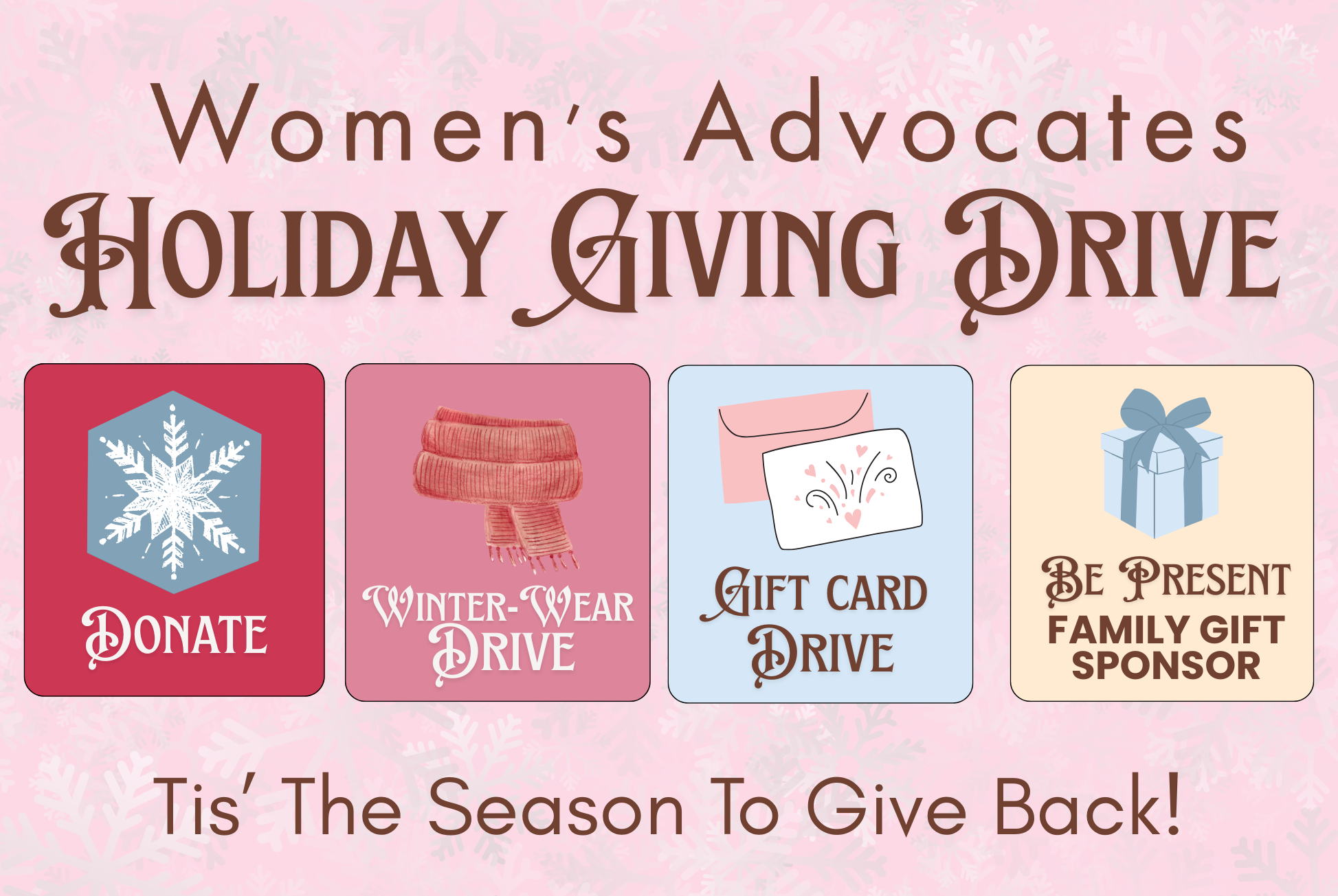 This holiday season, you can give the greatest gift of all: hope for individuals and families escaping domestic violence. Women’s Advocates, the nation’s first domestic violence shelter founded in 1974, located right here in Minnesota, calls on you to join the Holiday Giving Drive to keep life-saving services open 24/7 for 50 victim-survivors and their children every day. Your donation sustains emergency shelter, crisis intervention, children’s healing programs, pet foster care, therapy, advocacy, and housing stability.